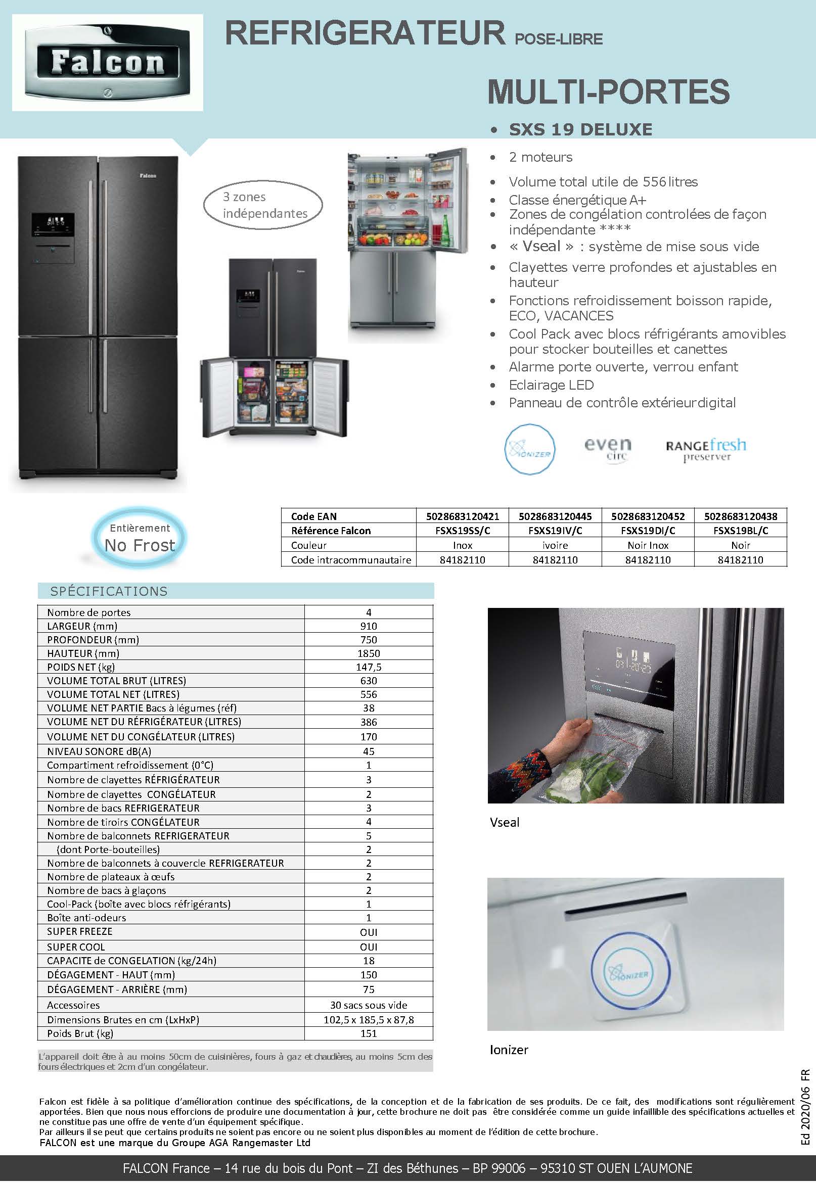 RÉFRIGÉRATEUR/CONGÉLATEUR FALCON INOX 4 PORTES